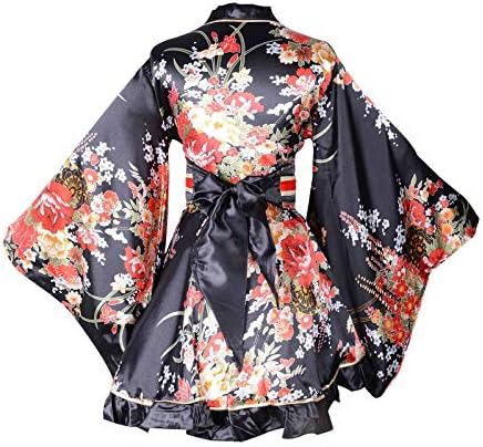 -Features: Gorgeous japanese kimono outfit mixes traditional japanese garb with sexy styling. This kimono dress features floral print design, wide obi belt with cute bowknot at the back, and loose long sleeve. The fabrics is soft, flowy and luxurious, with good drape, which can flatter your beautiful curves when clings to your skin. You will surely have a comfortable night with this sexy sleepwear.