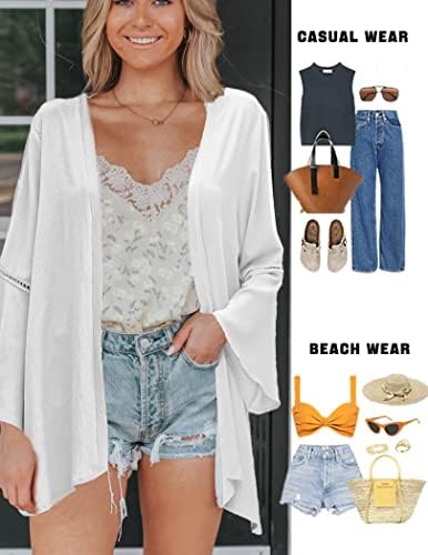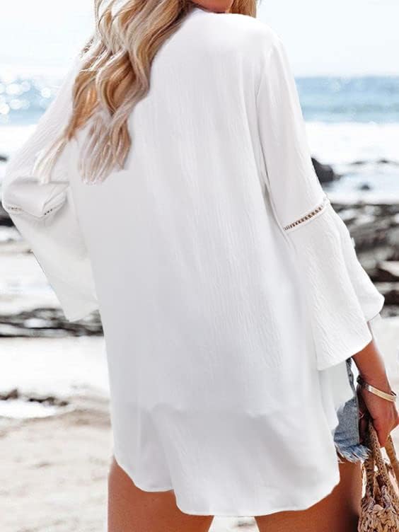 Bell Sleeve Design>> This kimono cover up features a bell sleeve together with lace patchwork looks chic and relaxed; Also good for covering your upper arms without being hot and flattering on different body.