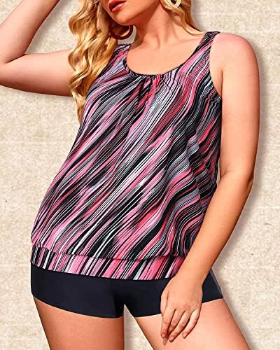 PLUS SIZE TANKINI: Pink striped print tankini with loosely fit design has great slimming tummy control that flatters all figures, covering your imperfections, yet still showing your curves. The tankini set features trendy slim silhouette, suitable for swimming, pool party, vacation, beach, sports and so on.