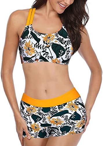 【Womens Swimsuits】: Swim tank top + sports bra + boy shorts. Trendy 3 piece bathing suit offers you a playful range of combination, such as modest tankini swimsuits built-in padded bra or only one piece swim bra top matches with swim shorts.
