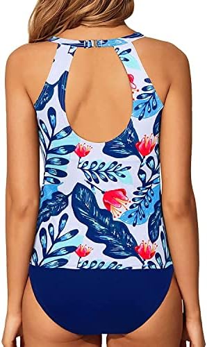 Yonique Two Piece High Neck Tankini Swimsuits for Women Tummy Control Bathing Suits Floral Print Swimwear