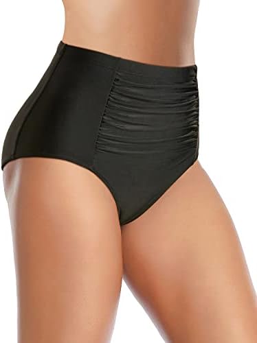 Yonique Women High Waisted Bikini Bottom Tummy Control Bathing Suit Bottom Ruched Full Coverage Swimsuit Bottom Only