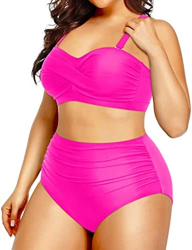 Plus Size Tummy Control Swimsuits: Plus size bikini sets with ruched full coverage bottoms have great tummy control, making you look slimmer. It is perfect for teens, ladies, moms and elderly.