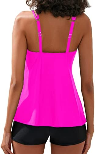 Flowy Tankini Tops: Black tankini bathing suit with removable push-up bra and double shoulder straps provides maximum support. A cute U-neckline gives you a flattering look.