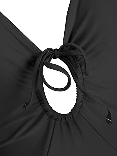 Design: V Neck One Piece Swimsuit with Shirring Design and Adjustable Shoulder Straps,Front Cutout