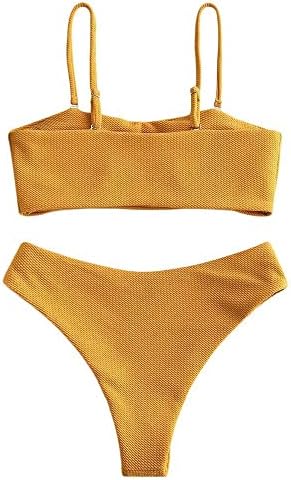 ZAFUL Women’s Bandeau High Cut Bikini Set Textured Removable Straps Bathing Suit Strapless Leopard Padded Swimwear