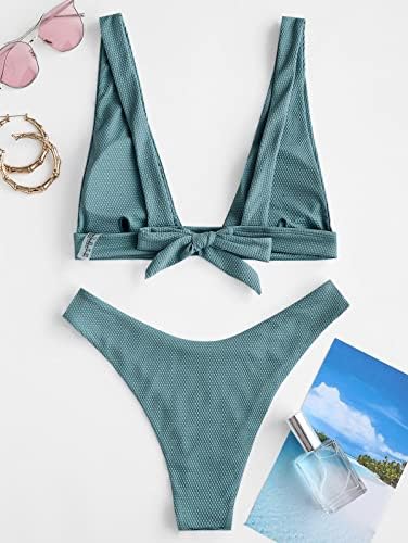 The Sexy high cut bikini featured with Braided Straps, Ribbed Knit, Removable Padded Bra,Plunging Deep V Neck,Solid Color, Self Back Tie,Low Waisted Bottom.Tanga Cheeky Bikini Set,Women High Cut Bikini,Ribbed Cheeky Swimsuits,Push Up Swimwaer,2023 Summer Trendy Bikini Set.