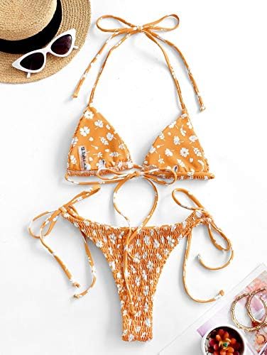 ZAFUL Women’s Dot Print High Cut Cross Triangle Bikini Set Two Piece Swimwear