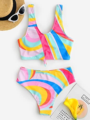 ZAFUL Women’s High Waisted Bikini Scoop Neck Swimsuit Two Pieces Bathing Suit