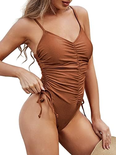 Design: Deep V Neck, Tie Side,Spaghetti Strap.The torso of our swimsuit is designed with Ruched pattern.
