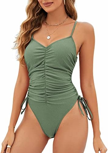 Design: Deep V Neck, Tie Side,Spaghetti Strap.The torso of our swimsuit is designed with Ruched pattern.