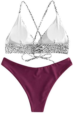 Two piece lace up criss cross triangle string bikini set with simple and elegant solid textured design. Grab people eyes with this cheeky bikini in your vacation