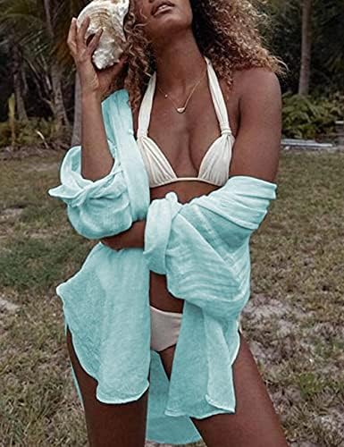 【PERFECT DESIGN FOR WOMEN】Sexy bikini cover up shirt ,bathing suit cover ups for swimwear women, elegance V-neck long shirt, roll-up cuffed sleeves, button-down shirt, simple and generous to wear