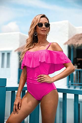 Flatering Your Curves with Comfy Fit:This one piece bathing suit offers a chic twist on the classic full piece swimwear.The torso of this one piece offers plenty of ruching to accentuate your body’s natural curves and compliment the frill accent on the upper part of this bather.The ruffle across the shoulders both hides the upper arm and creates balance with the hips, accentuating the waist line. If you are a pear shaped or hourglass figure, this is going to be flattering on you.